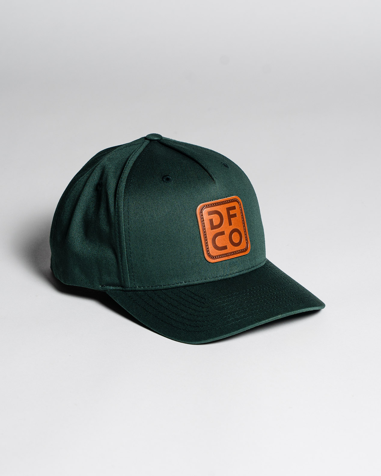 Leather patch embossed with the DFCO logo.