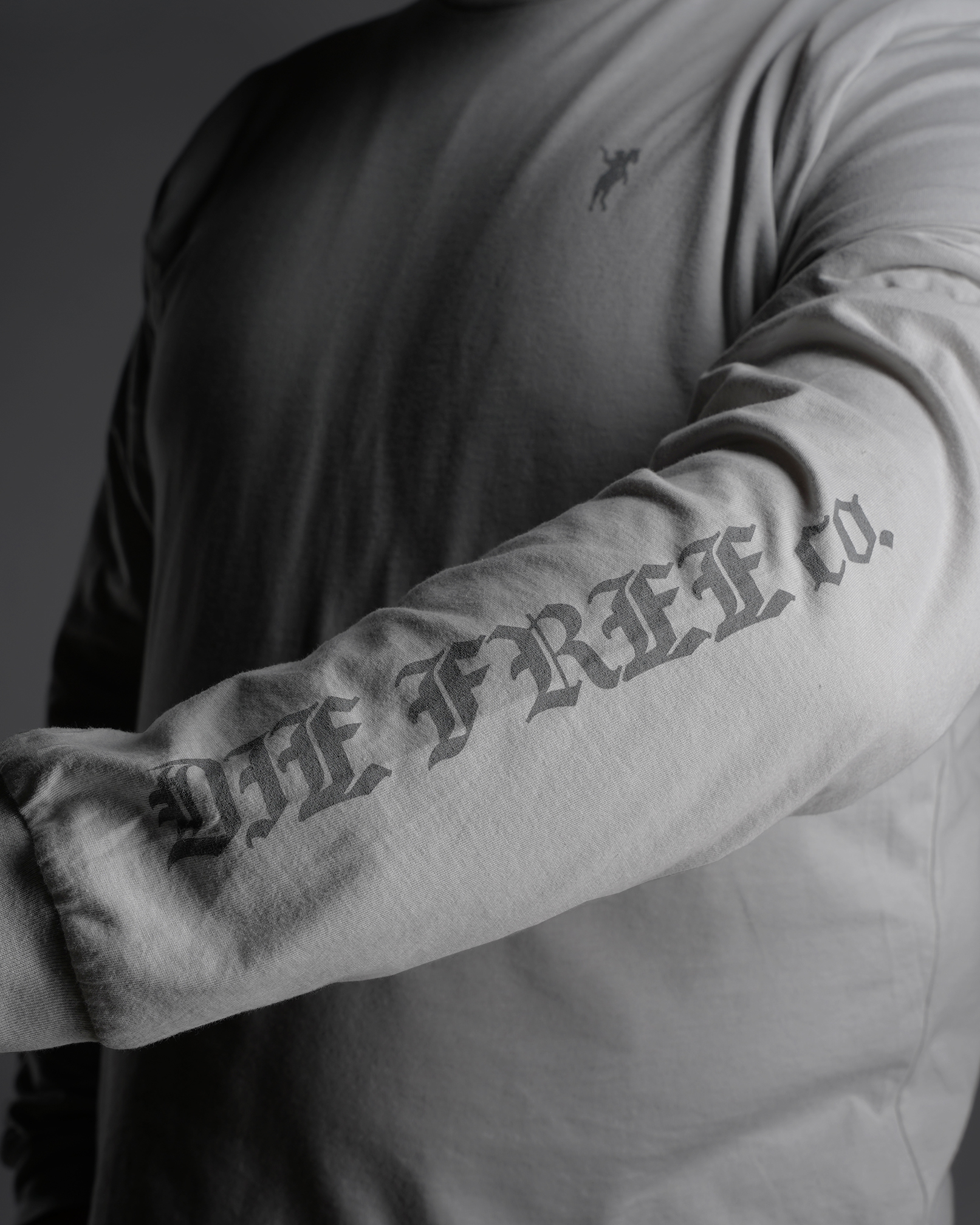 An ode to 90's streetwear, the Magnum longsleeve has an Old English style DFCO logo on the back, a DIE FREE CO. on the sleeve, and a Rider graphic on the left chest.