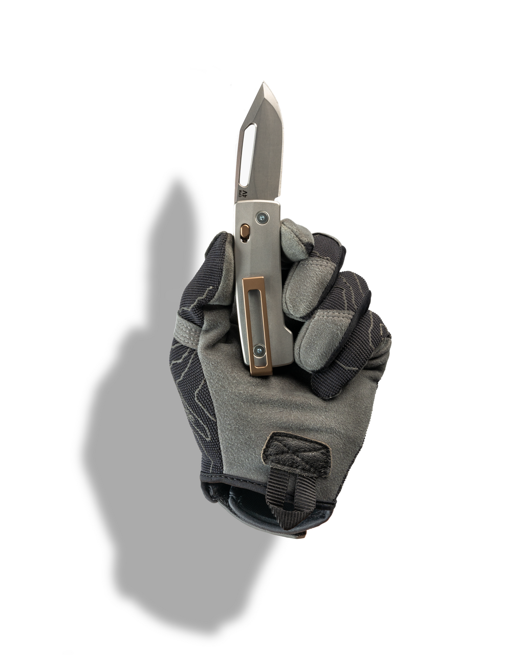 The blade is made from CPM-4V steel, and sharpened in house to a 25° blade edge. CPM-4V is an industry standard known for its superior edge retention and overall toughness. The 25° edge is ideal for a daily carry utility knife and provides lasting sharpness. With minimal components, a reliable locking mechanism, and all steel construction, this folder will last a few lifetimes. And like all quality tools, this one is proudly manufactured and assembled in the USA.