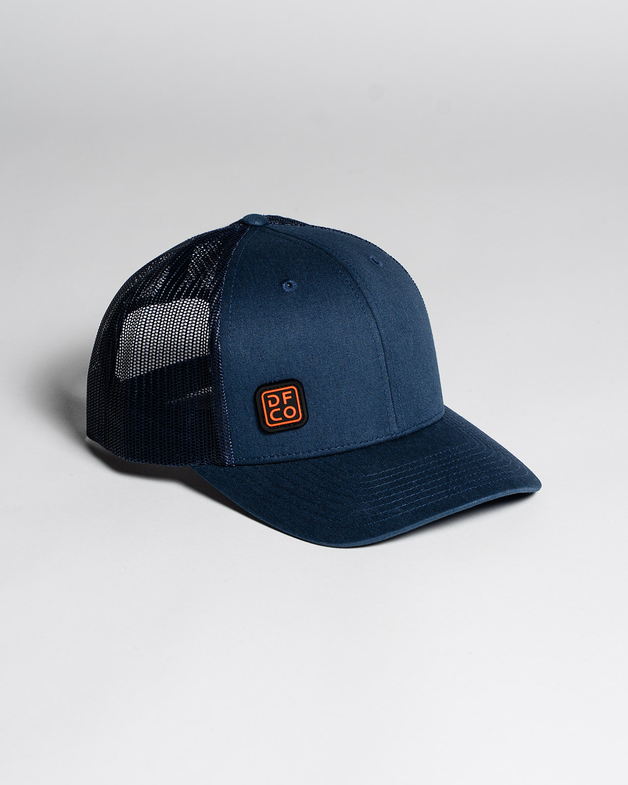 Product Description Cotton Twill Trucker Hat with a Pre Curved Visor and Classic Snapback. PVC patch embossed with the DFCO logo.